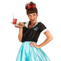 Nous vous proposons cette perruque rétro marron avec chignon.