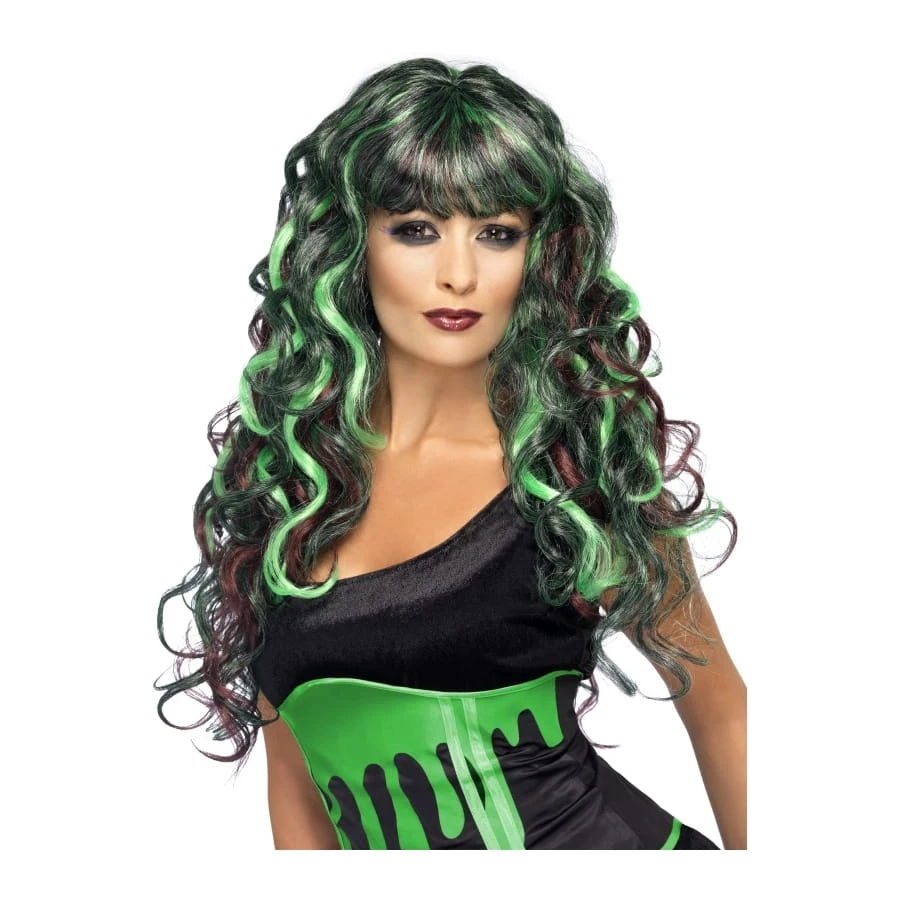 Vous incarner une belle sirène pour le carnaval pourquoi ne pas porter cette magnifique perruque. Tout le monde sera sous votre charme. Cette belle perruque est longue, elle arrive mi- dos avec des grosses boucles et une frange, elle est vert et violet.