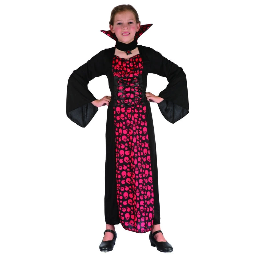 Pour ces fillettes, nous présentons la robe de petite vampiresse imprimé têtes de mort.