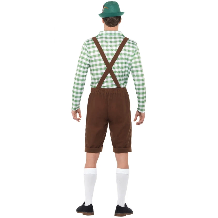 La Saint-Patrick vous met au vert ! Mais que diriez-vous d’associer cet événement à la culture bavaroise ? Messieurs, faites-vous un look stylé dans cette tenue short marron de Tyrolien. A la fois classe et vintage, l’ensemble se porte aussi bien à la Saint-Patrick qu’à la fête de la bière. Il est composé d’une chemise à carreaux verte, à manches longues, avec une petite ficelle marron placée au niveau du col, à attacher par devant. L’article comporte également une salopette de couleur marron foncé. Il s’agit d’un short marron uni accompagné de bretelles à motifs marron et rouge. Inspirez-vous de la photo pour fignoler le déguisement. Des chapeaux de bavarois et divers accessoires vous attendent encore sur happyfete !