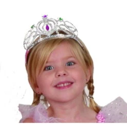 Tiare de conte de fée pour enfant entièrement en argent et orné de fausses pierres précieuses. Lors de la commande vous ne pourrez choisir ni le modèle ni la couleur de l’accessoire. Vous le recevrez comme présenté. Il est idéal pour compléter une tenue de princesse, surtout si votre fille est fan des princesses Disney.