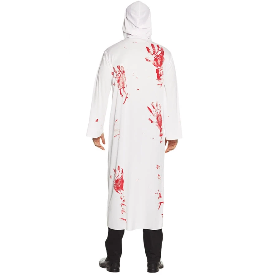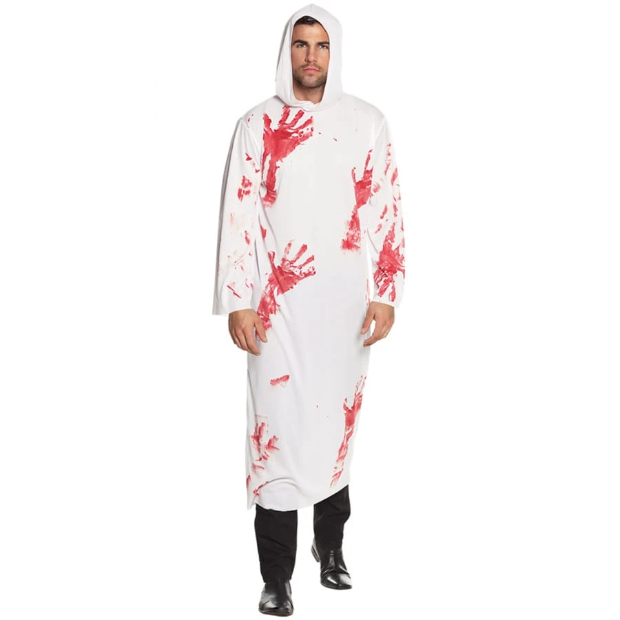 La tunique blanche avec tâches de sang est un costume unisexe idéale pour Halloween.